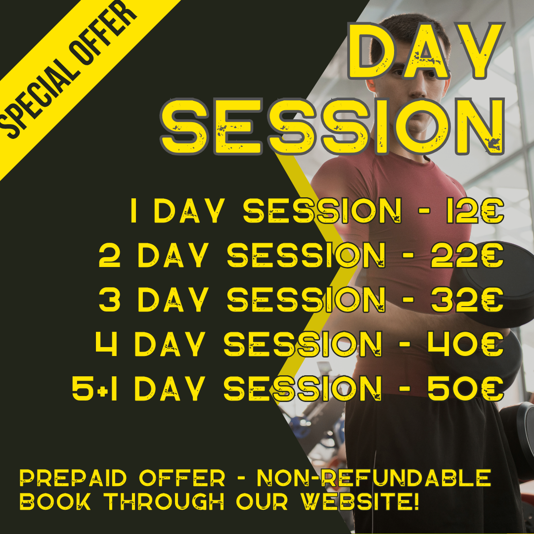 Ιδανικό για επισκέπτες μικρής διάρκειας ή οποιονδήποτε θέλει να πάρει μια αίσθηση για το γυμναστήριο. Αυτό περιλαμβάνει πρόσβαση σε όλο τον εξοπλισμό γυμναστηρίου και δωρεάν πετσέτα και μπουκάλι νερό.